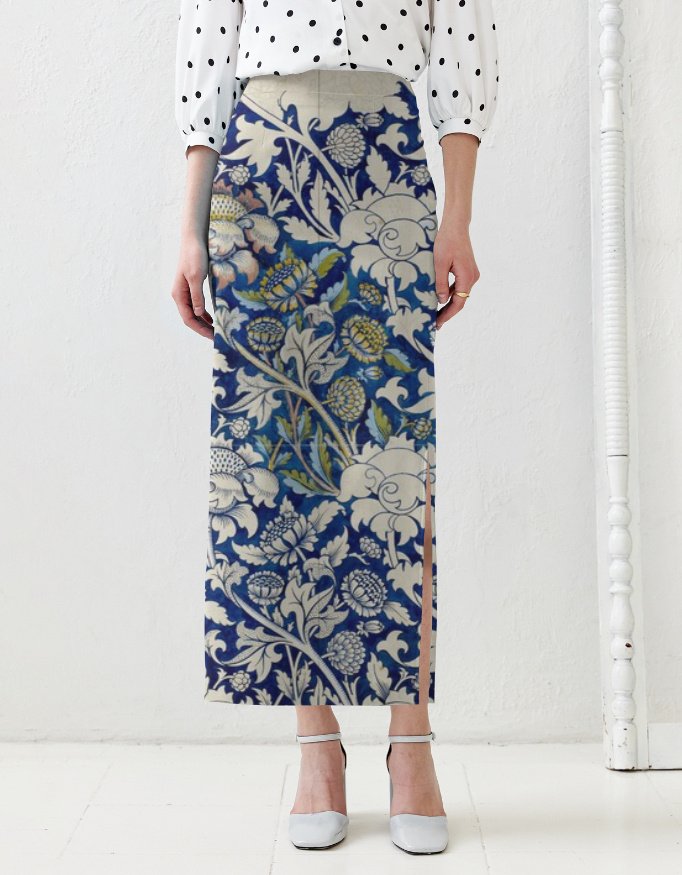 Design: A classic pencil silhouette elevated with a subtle side slit for ease of movement and a modern edge.